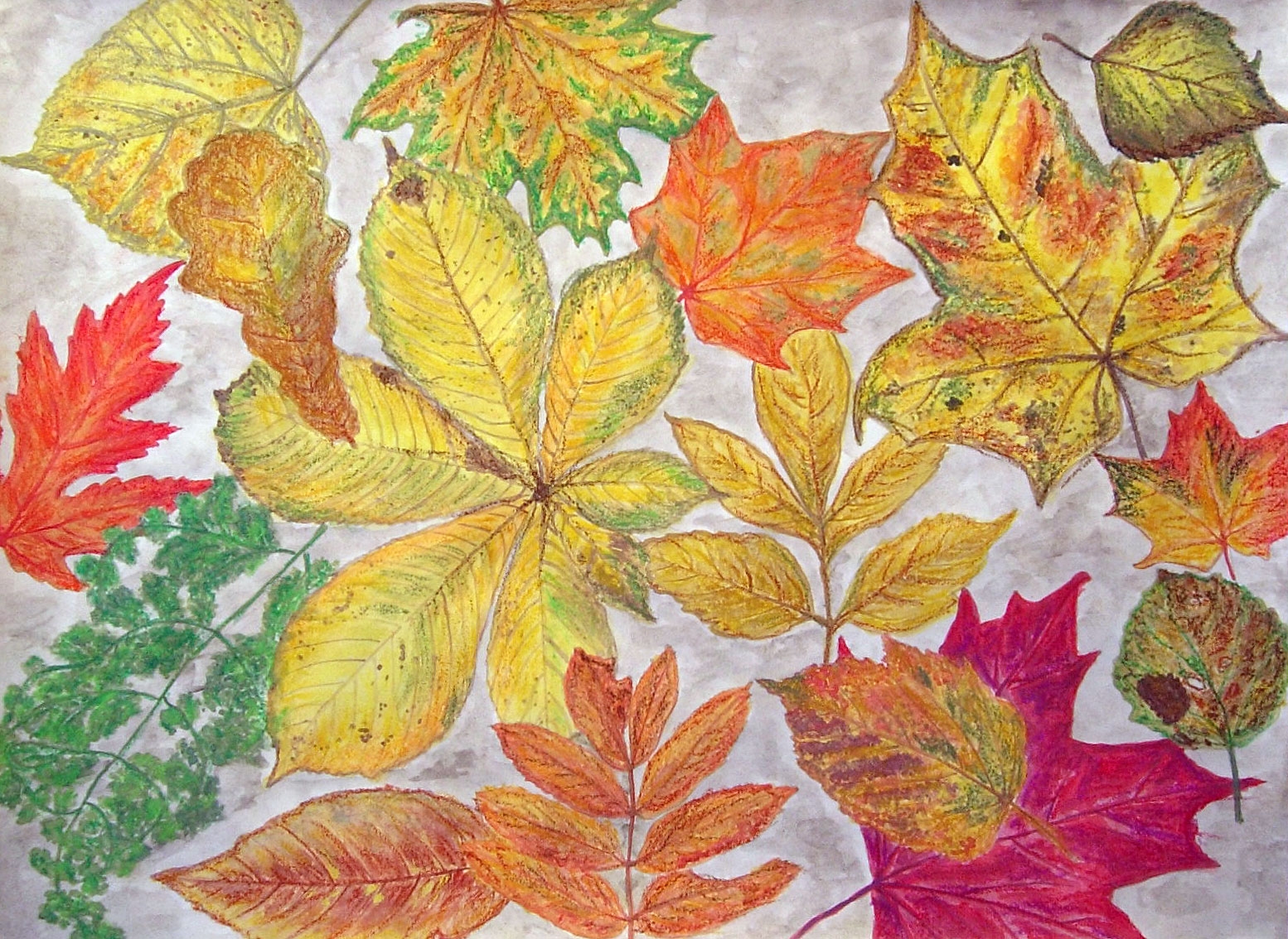 Серёжа, спасибо за открытие этой рубрики! Стихов, полученных на Второй Системе, у нас много, а картин нет. Пожалуйста, не стесняйтесь, творите! Я вспомнила, что у меня осталась последняя картина с осенними листьями. Причём именно на Второй Системе мне подсказали необычную технику совмещения гуаши и масляной пастели. По-моему получилось не плохо?